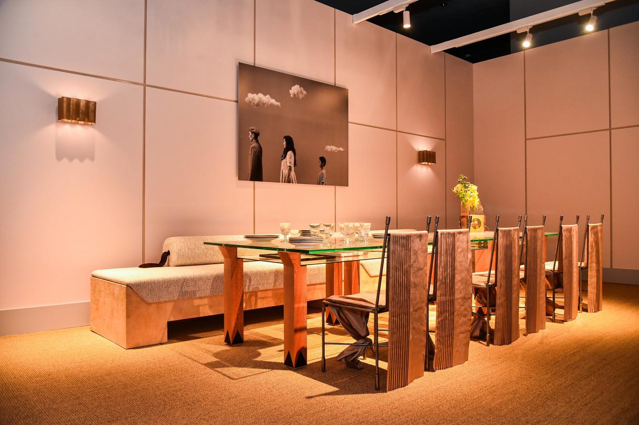 设计师洪苍蔚以“细细幸福人居”为主题,以“场态”与“场能”为核心,呈现幸福场域的构建逻辑:家具、艺术品、古美术,结合香道、咖啡等生活方式提案,勾勒出理想居住的多样图景。展览不仅传递东方哲学的温度,更希望参观者在沉浸式体验中感受空间的温暖与幸福。